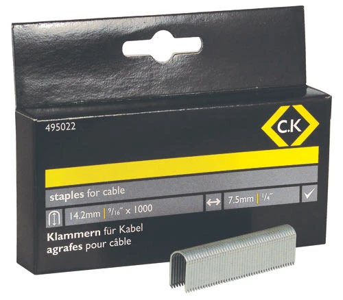 Be the first to review “C.K Cable Staples 7.5mm Wide X 14.2mm Deep Box Of 1000 495022” Cancel reply
