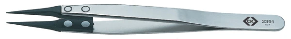 Carbon fibre tips for the safe handling of highly sensitive electrical components. High grade stainless steel bow – acid and corrosion resistant. Fully ESD compliant for safe use on sensitive electronic components. Anti-magnetic to prevent electro -magnetic damage. Heat resistant up to 270 degrees C for safe use.