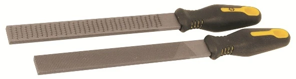 High carbon steel, hardened and tempered for strength and durability. Two component handle featuring a soft grip outer with solid core – for safety, performance and control. One side bastard cut for wood, the other side coarse cut for wood or metal