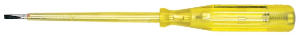 VDE approved mainstester. One piece moulded blade and handle, fully insulated for assured safety. High visibility permanently sealed resistance neon tube. Top quality chrome vanadium blade. Nickel plated spring steel pocket clip. DIN 57680-6, DIN VDE 0680-6:1972-041