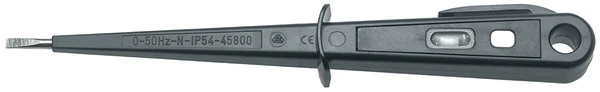 VDE approved mainstester One piece moulded blade and handle, fully insulated for assured safety. Strong black plastic body with an integral pocket clip, hanging hole and anti-slip guard. The bulb is a clear easy to see bright neon. Top quality nickel plated blade DIN 57680-6, DIN VDE 0680-6:1972-04