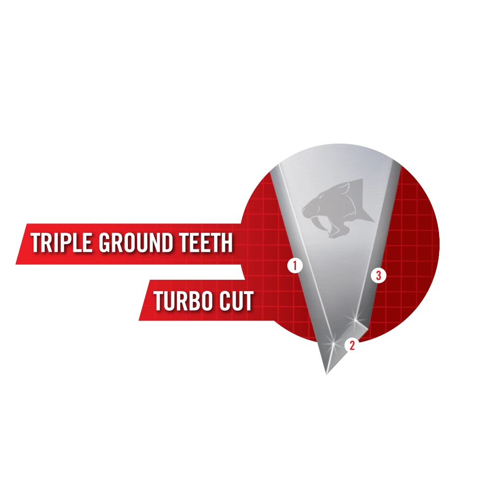 Triple ground ‘turbo cut’ teeth for superior cutting performance.