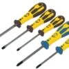 Tip type marking for easy identification. Large soft grip tri-lobe handle for exceptional comfort and high torque turns. Handle injection moulded directly to blade giving the ultimate bond for increased reliability and durability. Anti roll flats to prevent the screwdriver rolling off sloping surfaces. Toughened alloy steel blade for excellent durability. Precision machined tips to reduce the risk of tip breakage